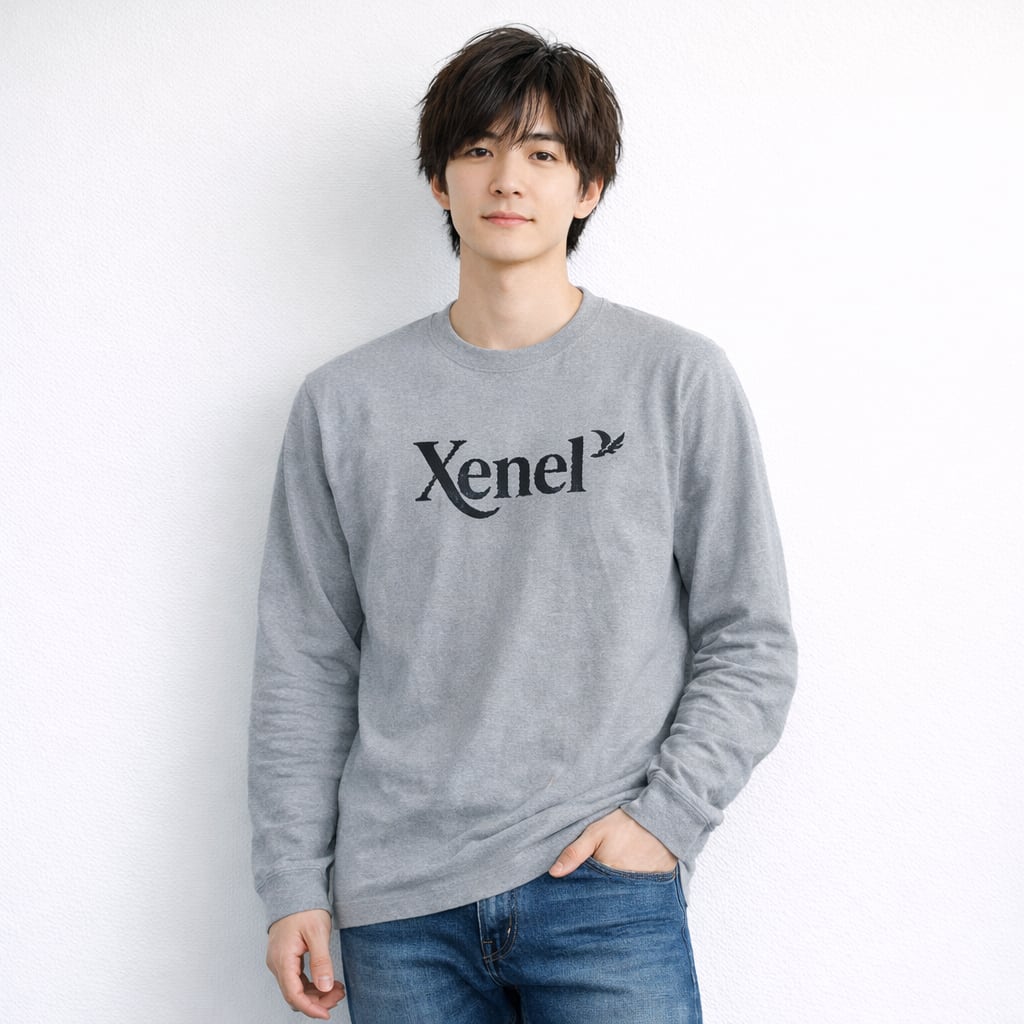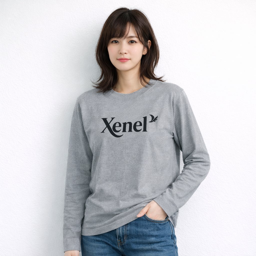 Xenelロゴ ロングスリーブTシャツ/ミックスグレー