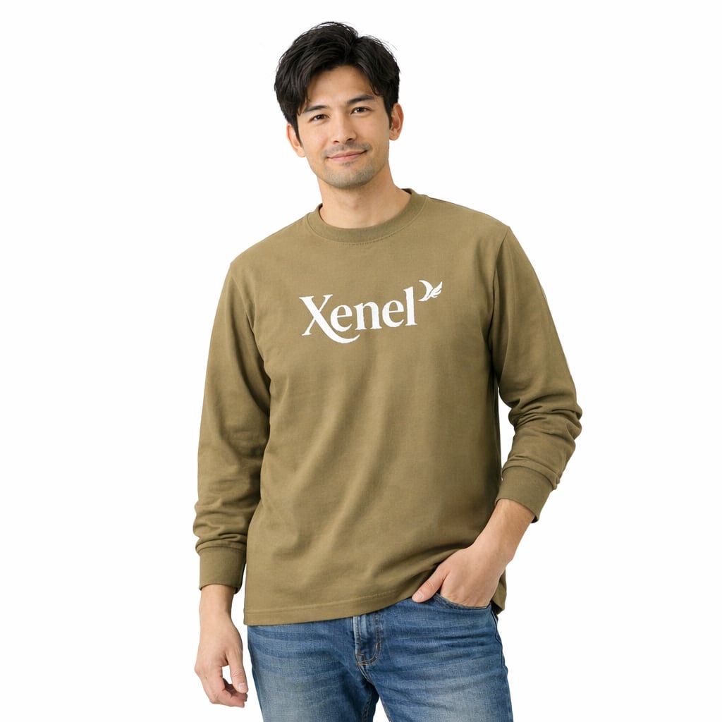 Xenelロゴ ロングスリーブTシャツ/サンドカーキ
