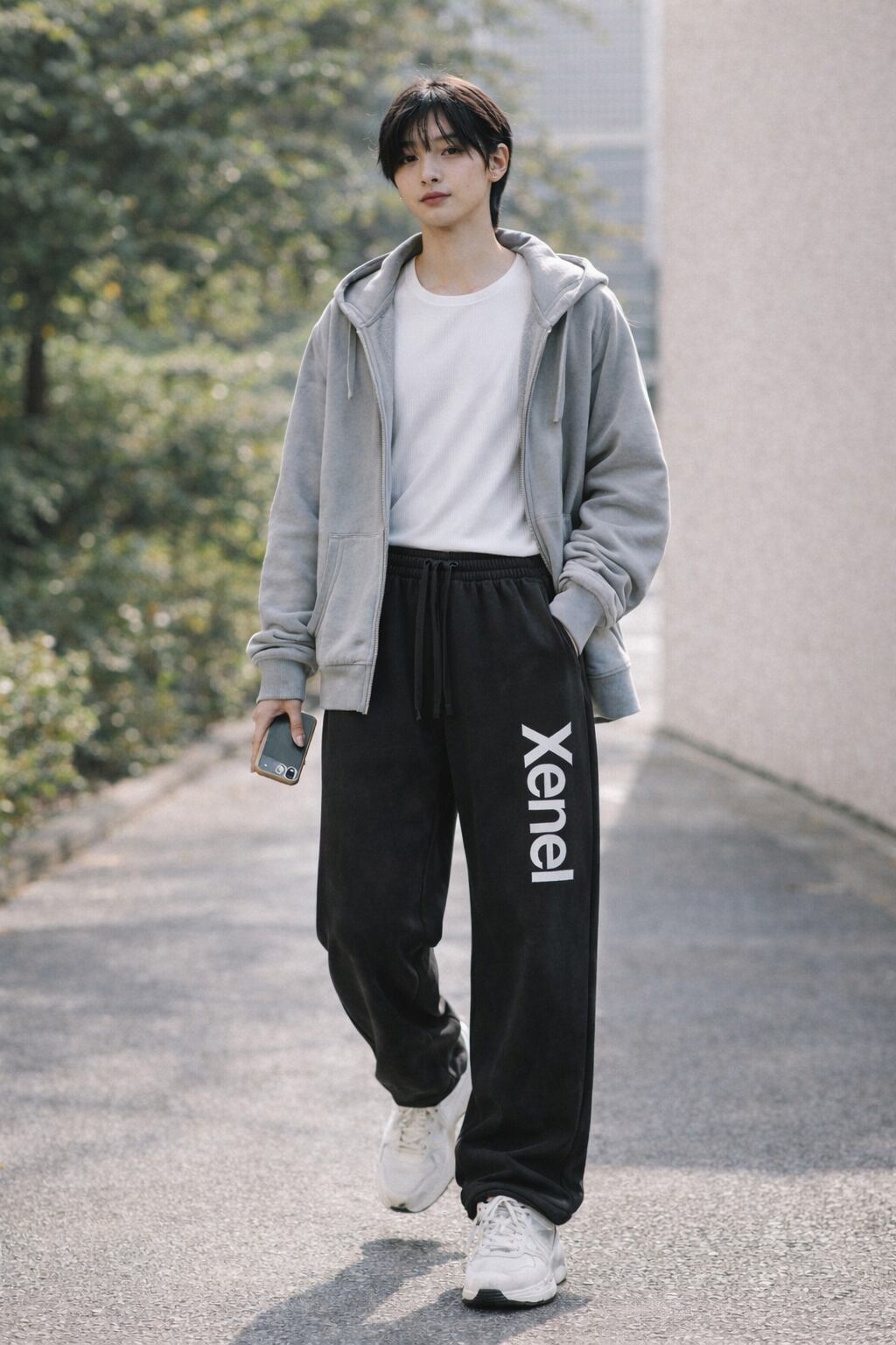 裏起毛ウォッシュ加工スウェットパンツ/ブラック