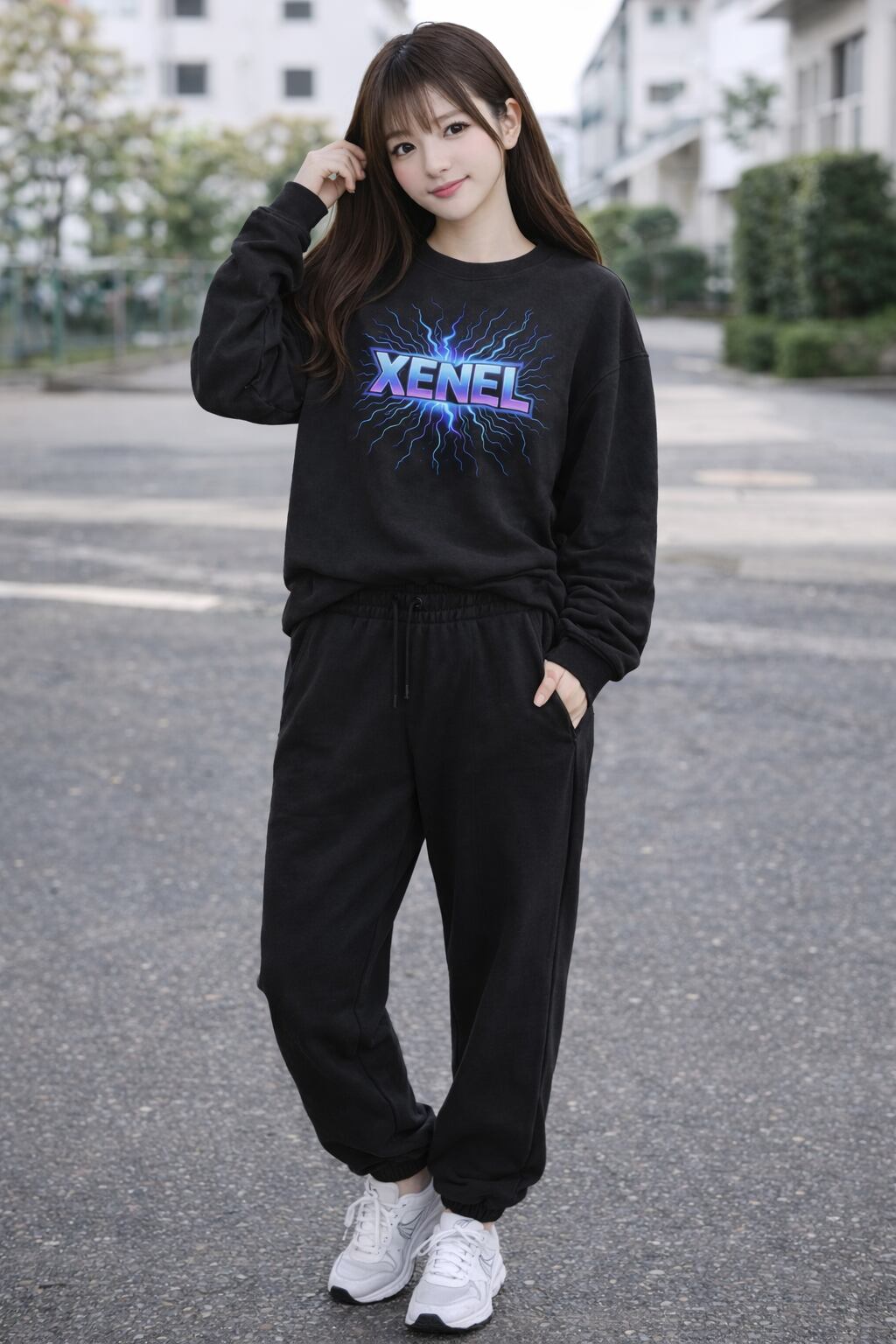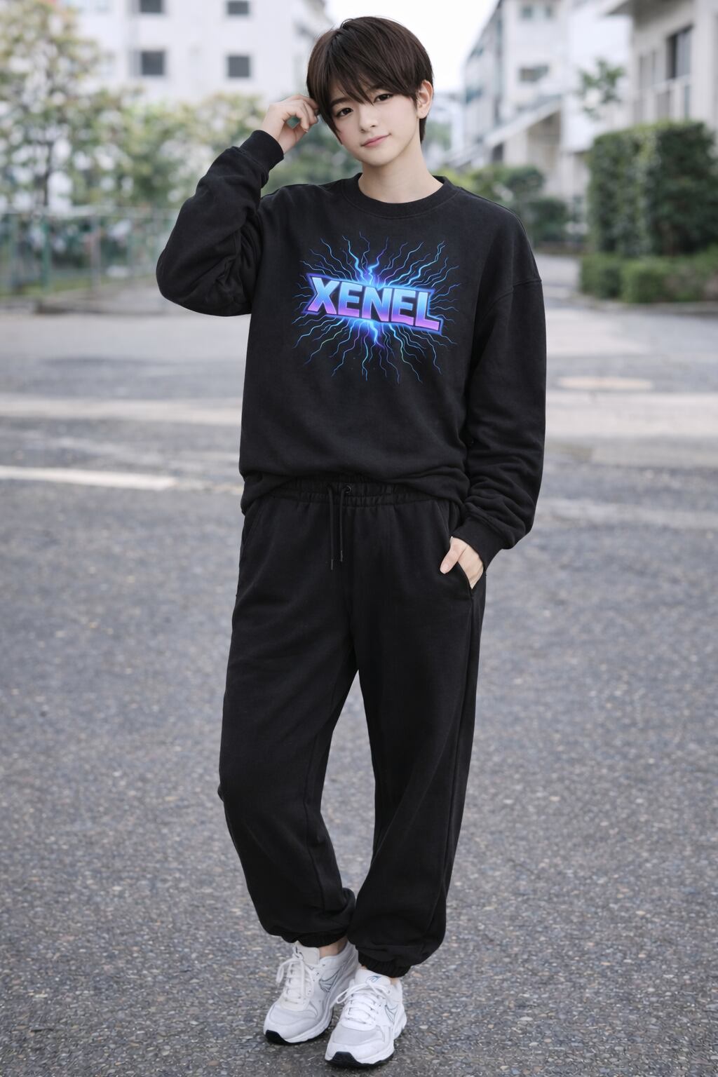 フェイクスエードセットアップ/XENEL エレクトリックラインセットアップ ブラック