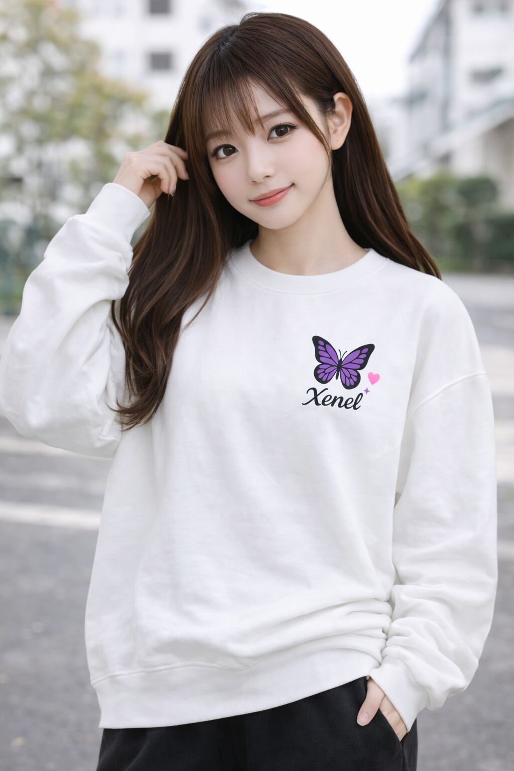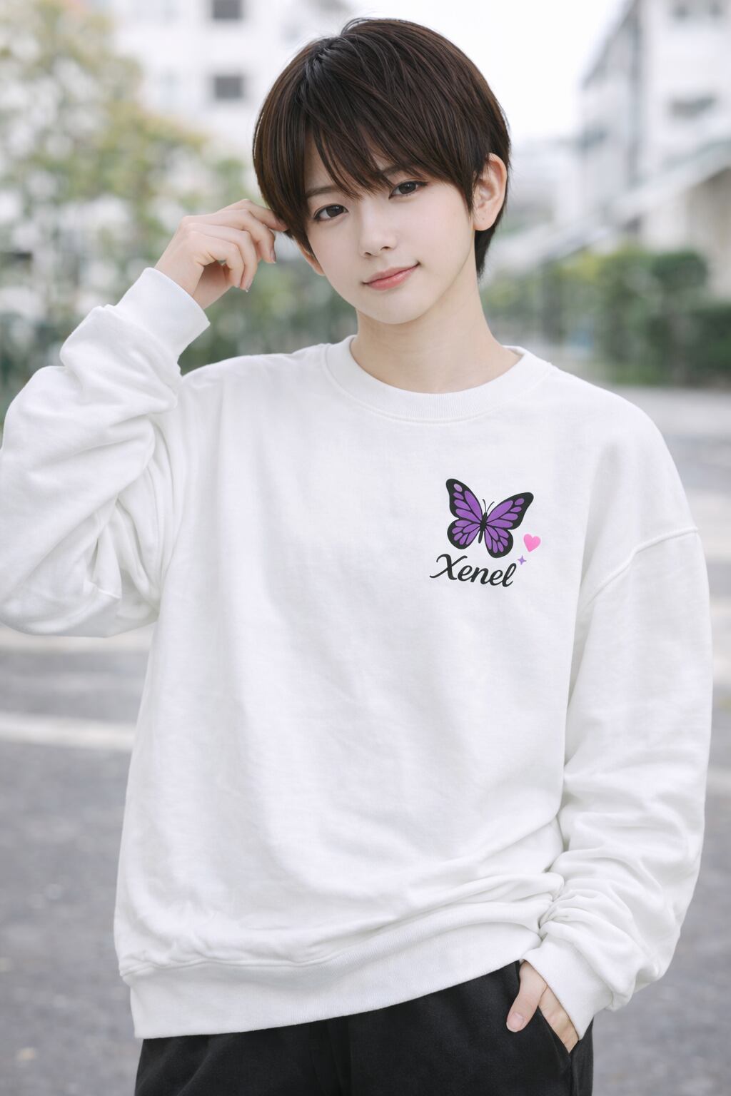 裏起毛 サイドリブ スウェット/Xenel Pastel Butterfly ホワイト