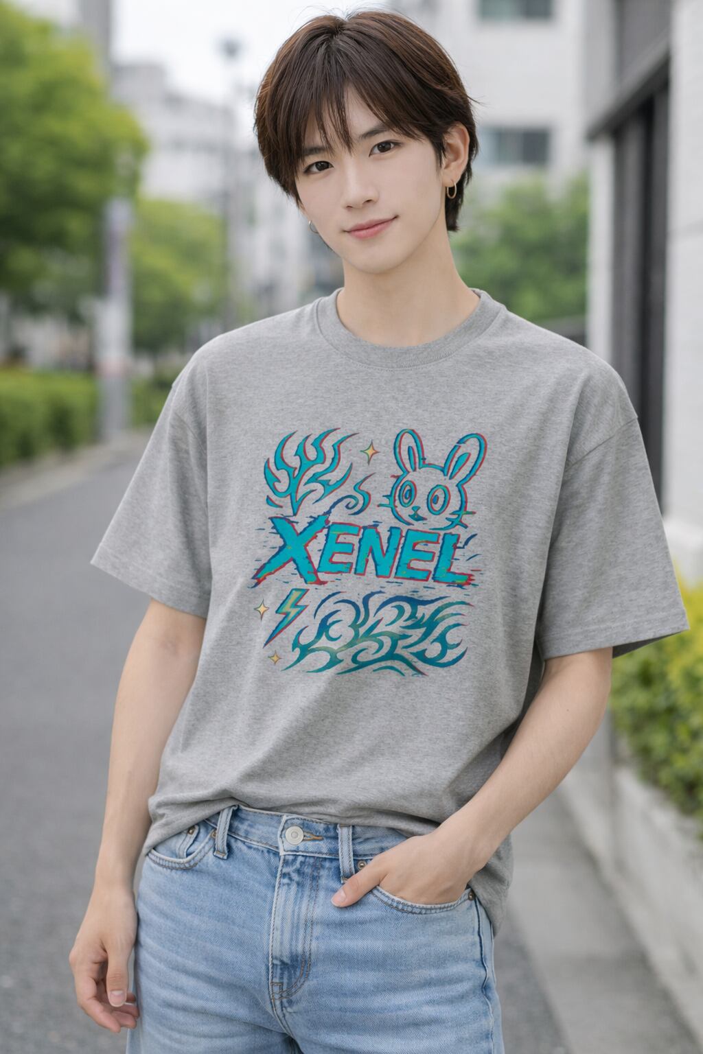 スタンダード Tシャツ/Xenel Street Bunny グレー