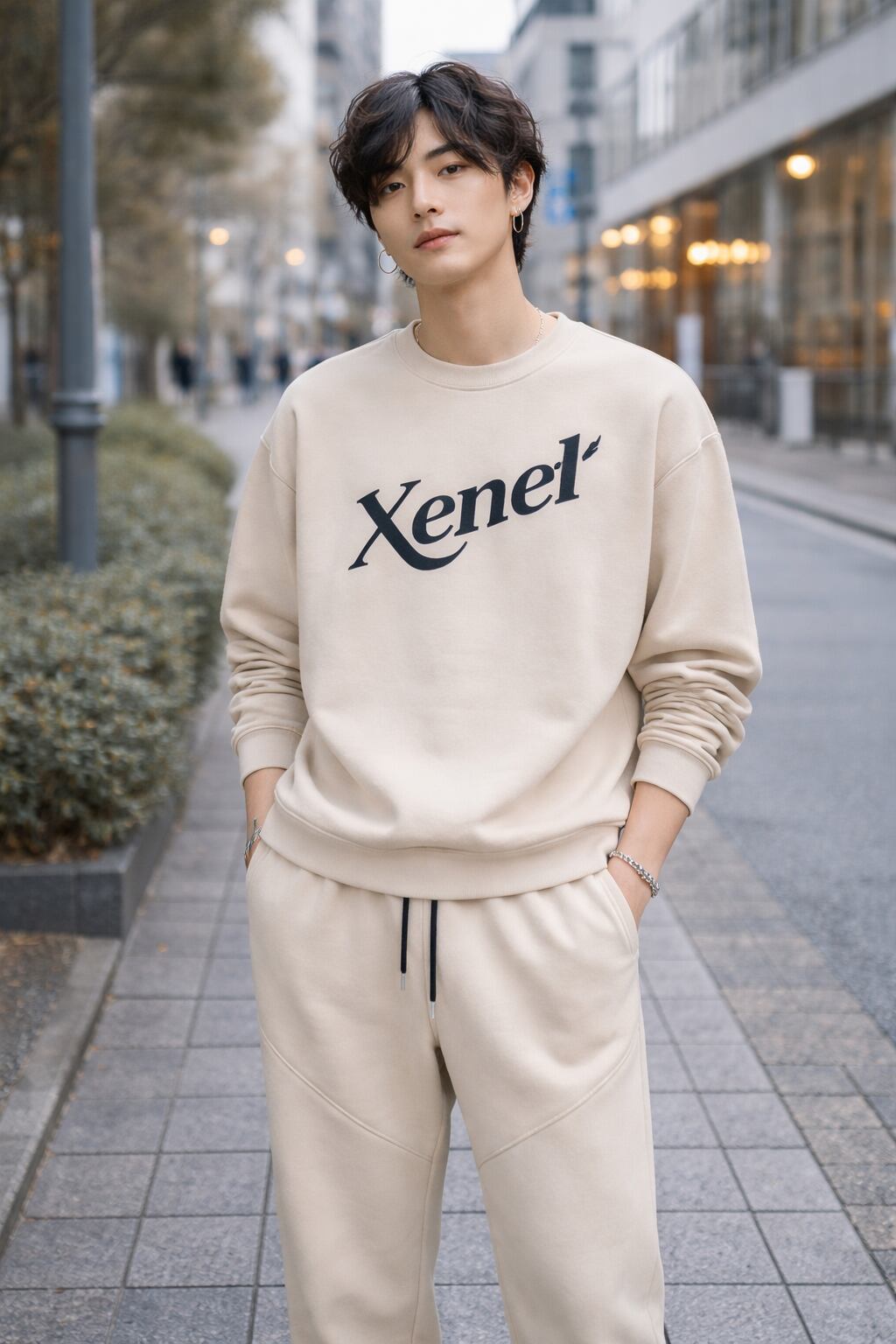 ストレッチ性のあるフェイクスエード生地を使用したセットアップアイテム。