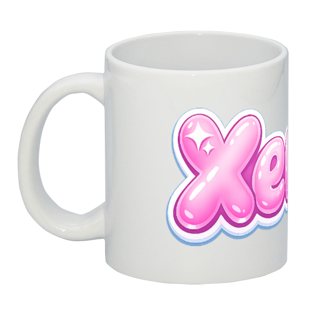 ピンクロゴがかわいいXenelのマグカップ。