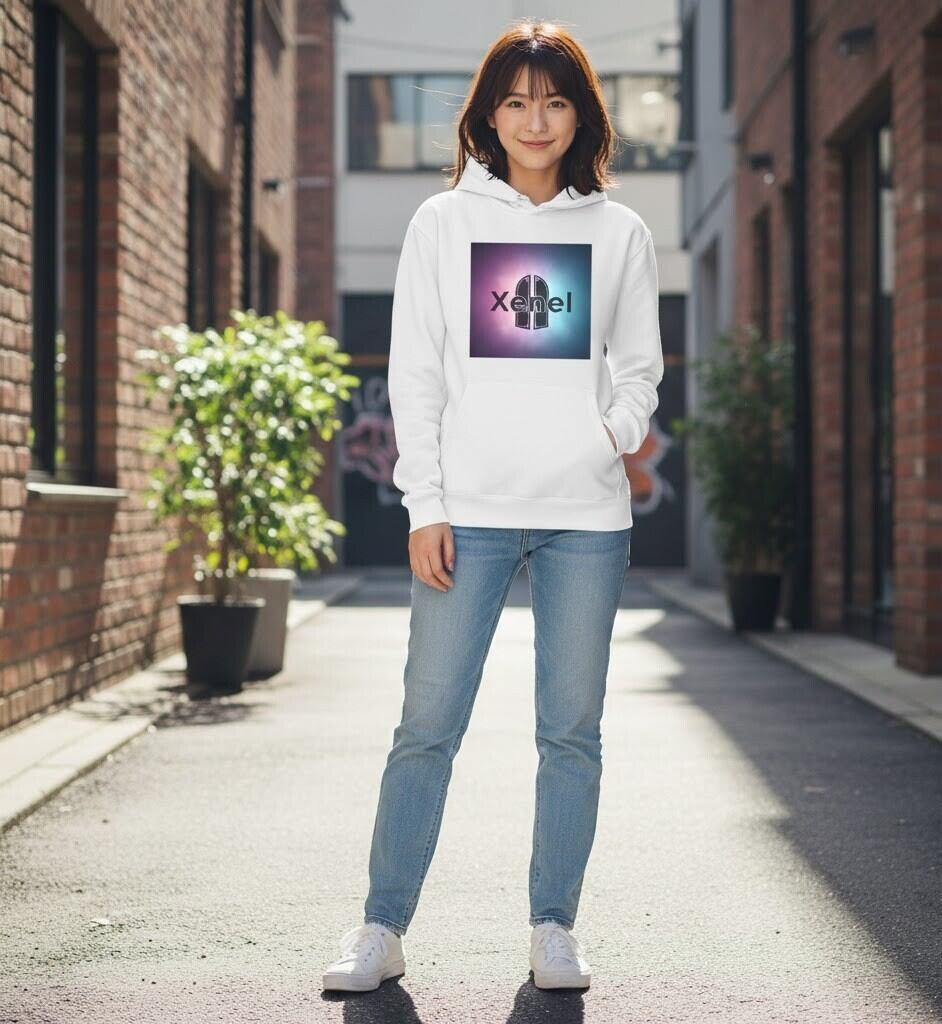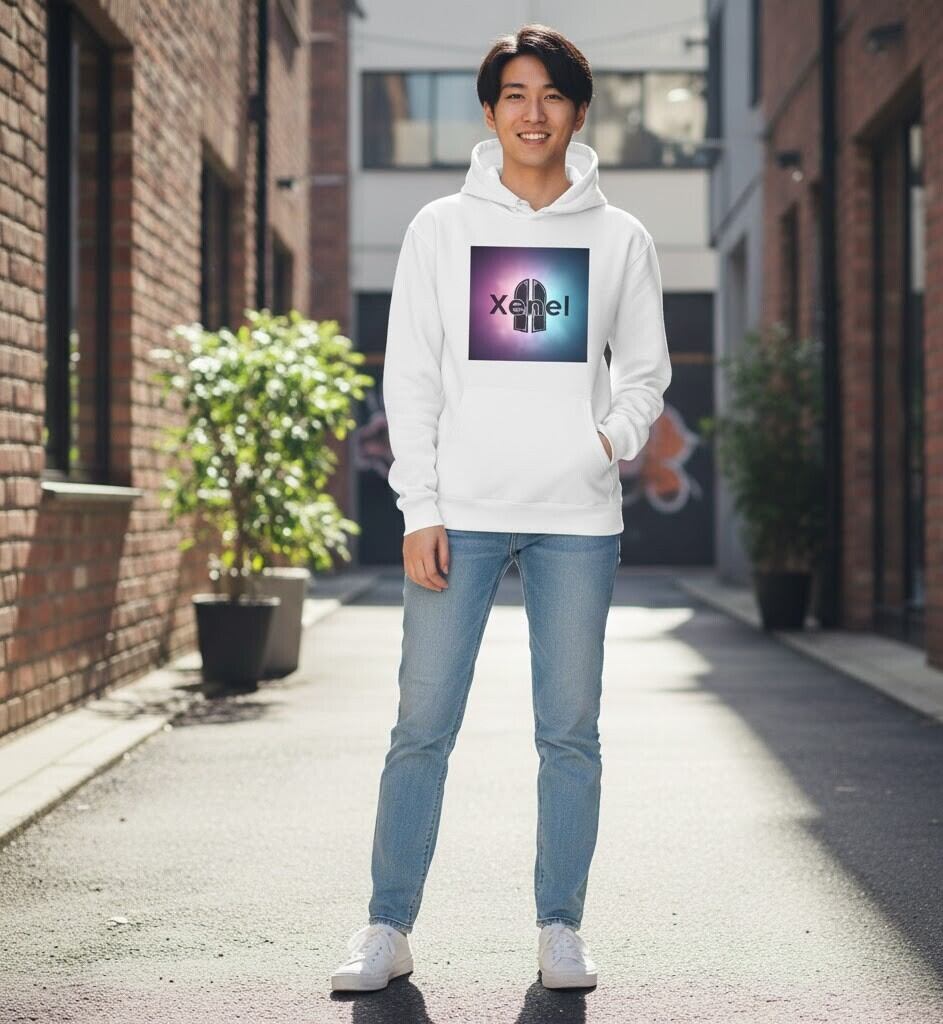 胸元に浮かぶのは、月と光に照らされた Xenel のロゴ。