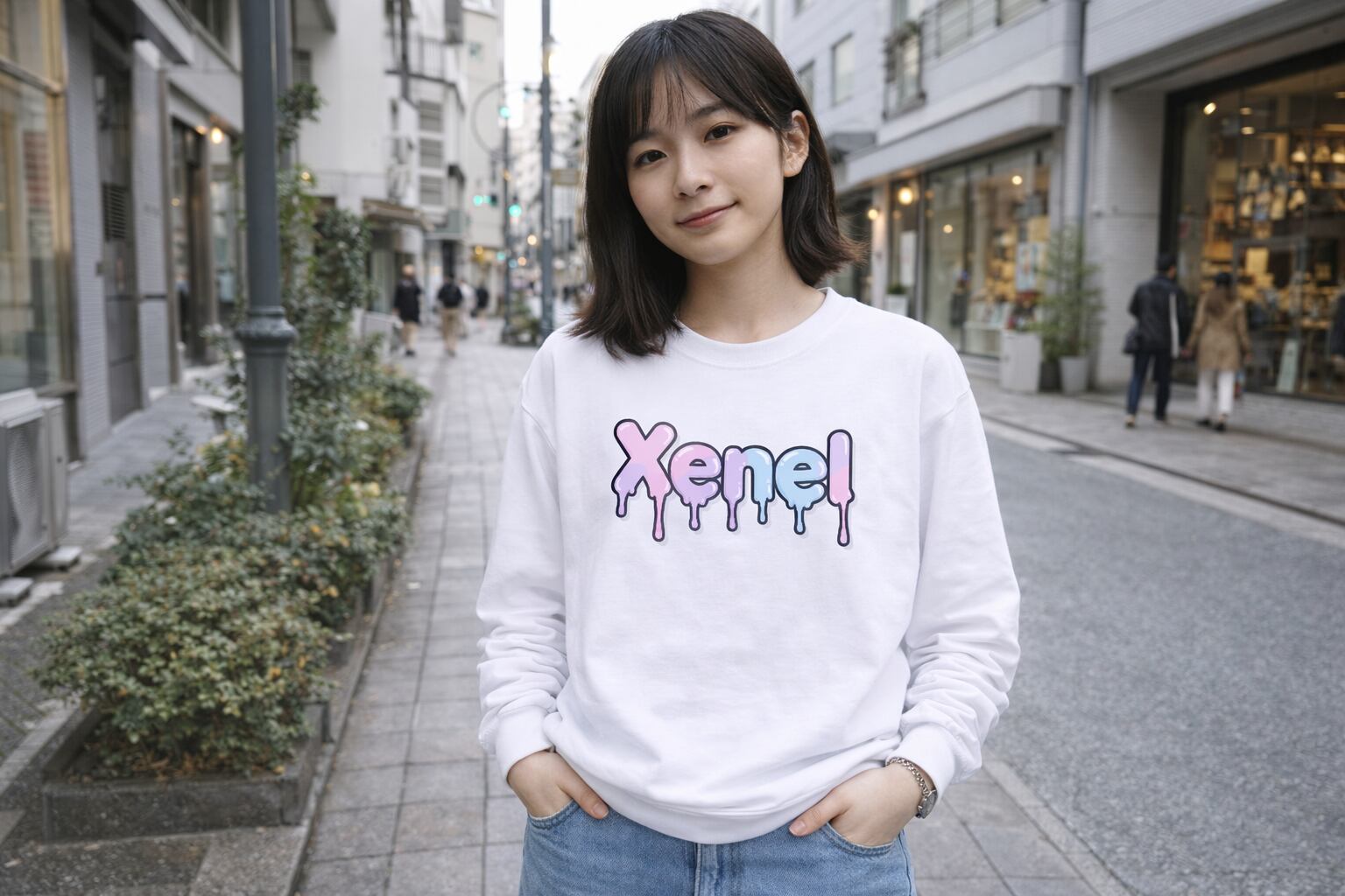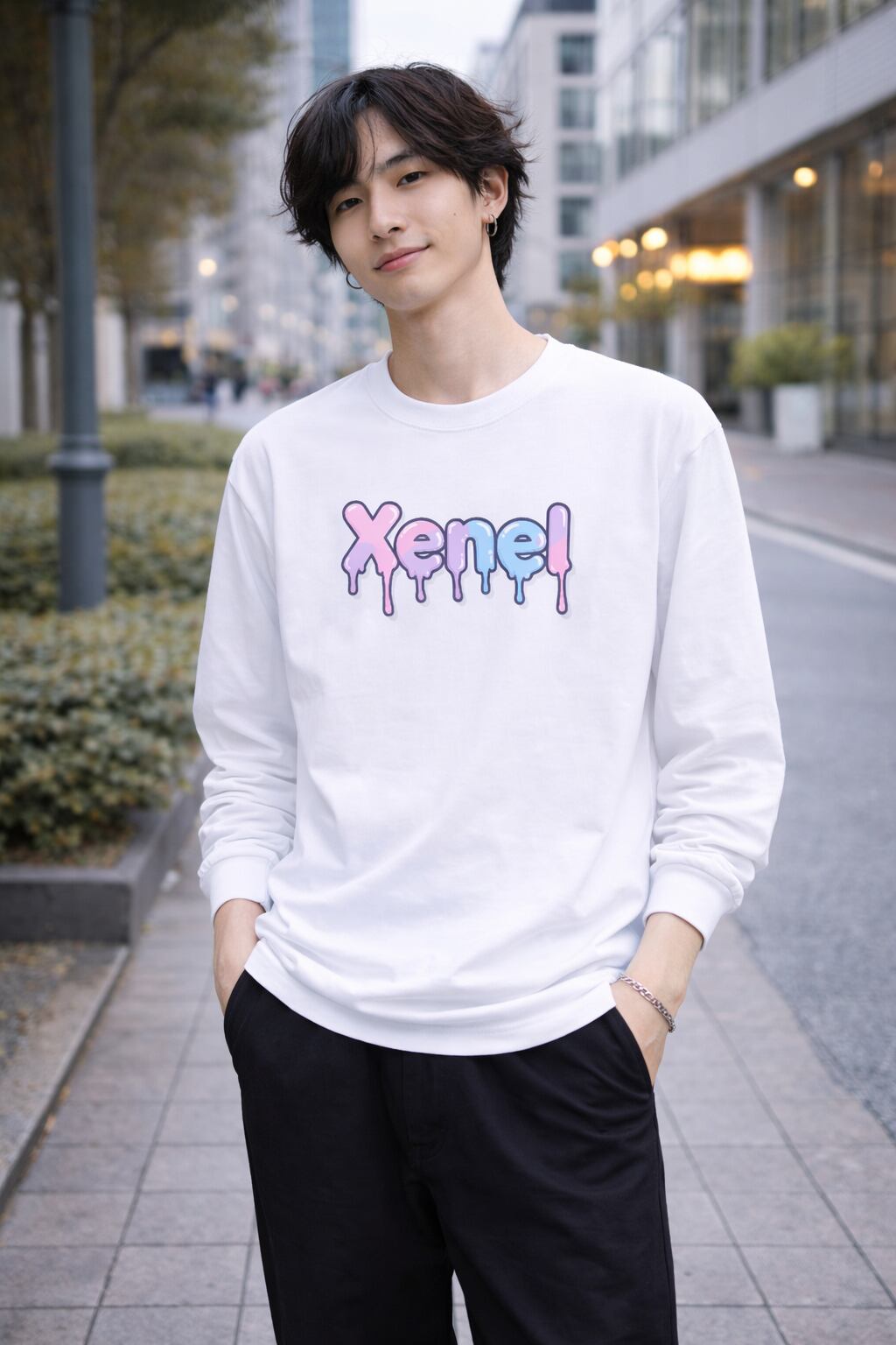 溶けるような「Xenel」ロゴが印象的なロングスリーブTシャツ。