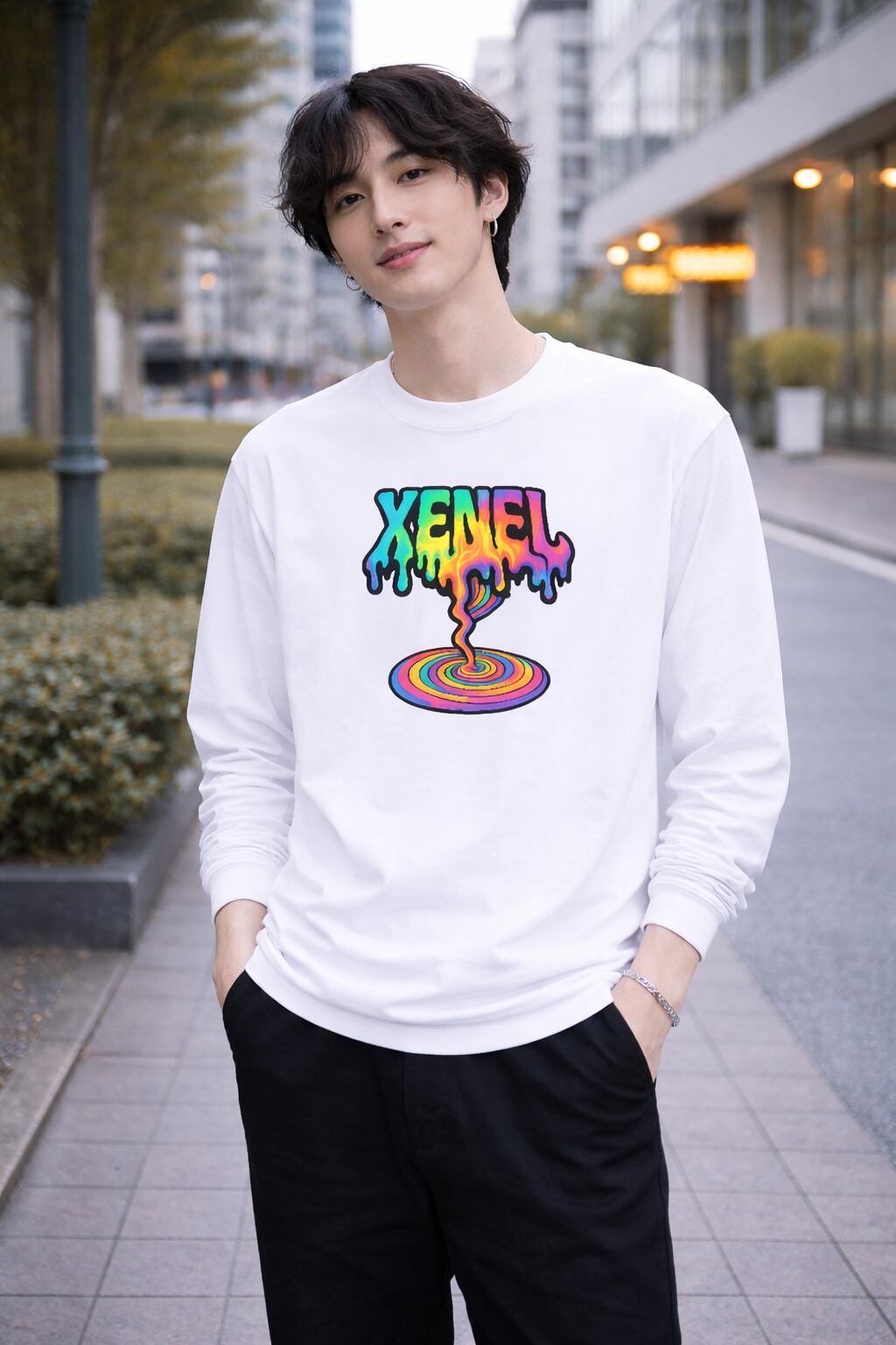Xenelロゴが溶け落ちるようにデザインされた、インパクト抜群のロングスリーブTシャツ。