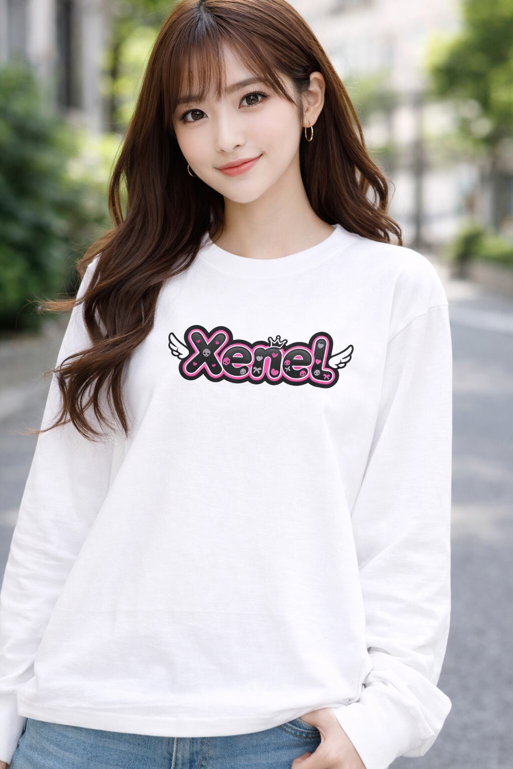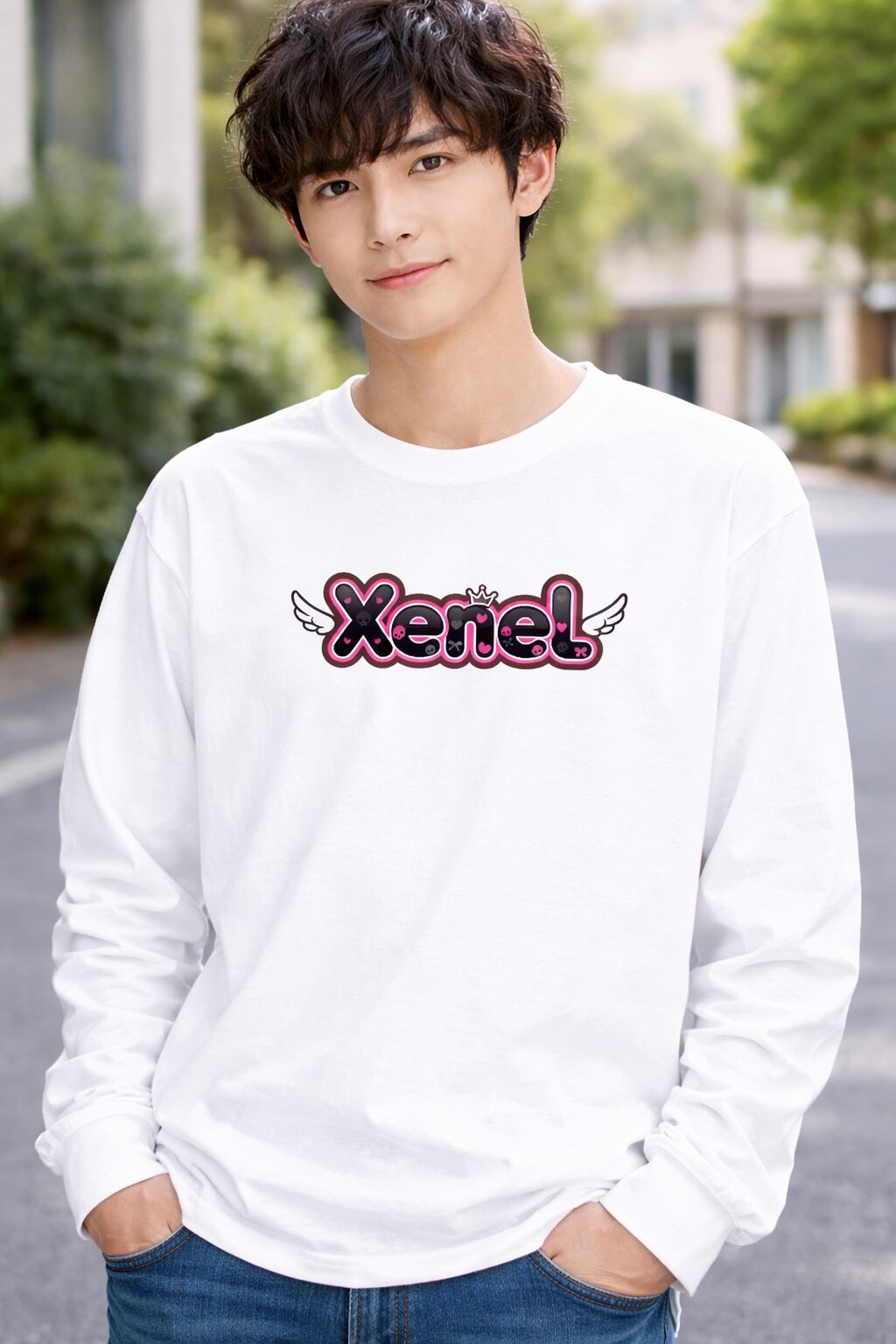 Xenelロゴに羽モチーフを組み合わせた、印象的なロングスリーブTシャツ。