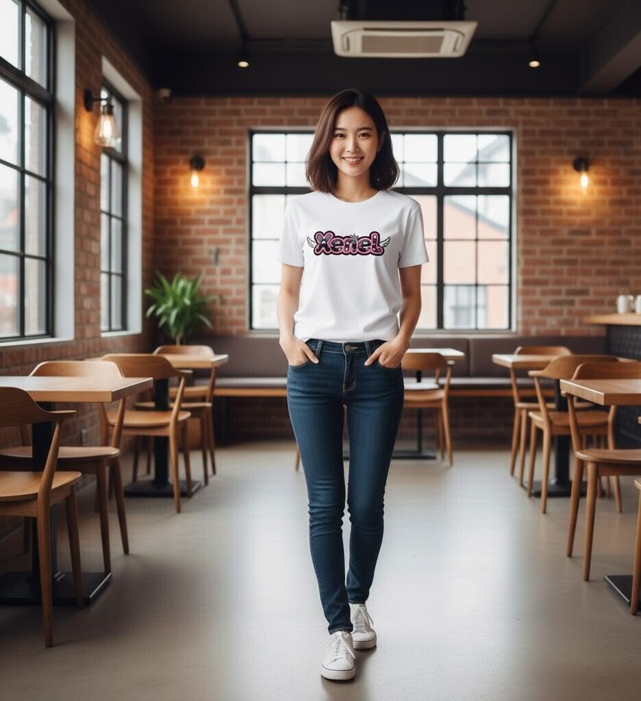 シンプルな白Tに、ロゴが主役。