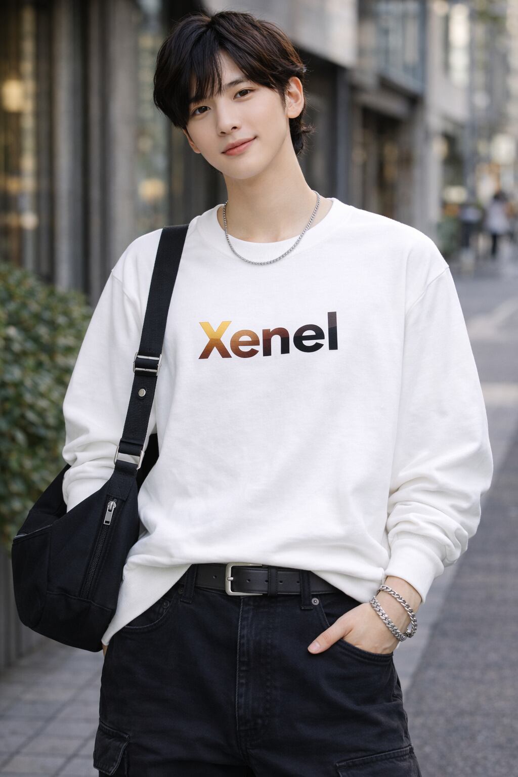 胸元に配置した「Xenel」ロゴが、日常のコーデにさりげない個性をプラスします。
