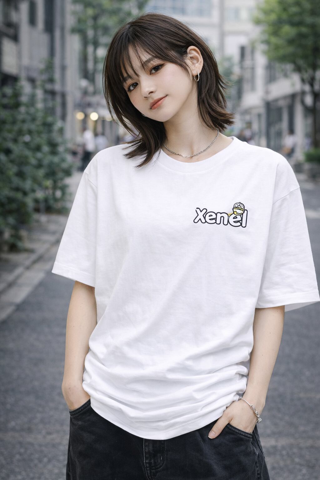 胸元に小さく配置された「Xenel」のミニロゴが印象的なワンポイントTシャツ。