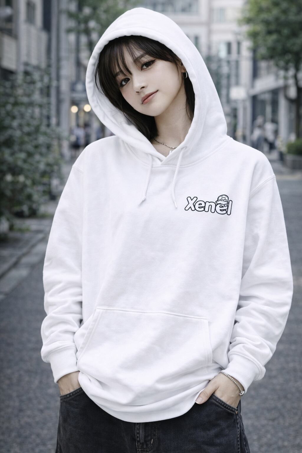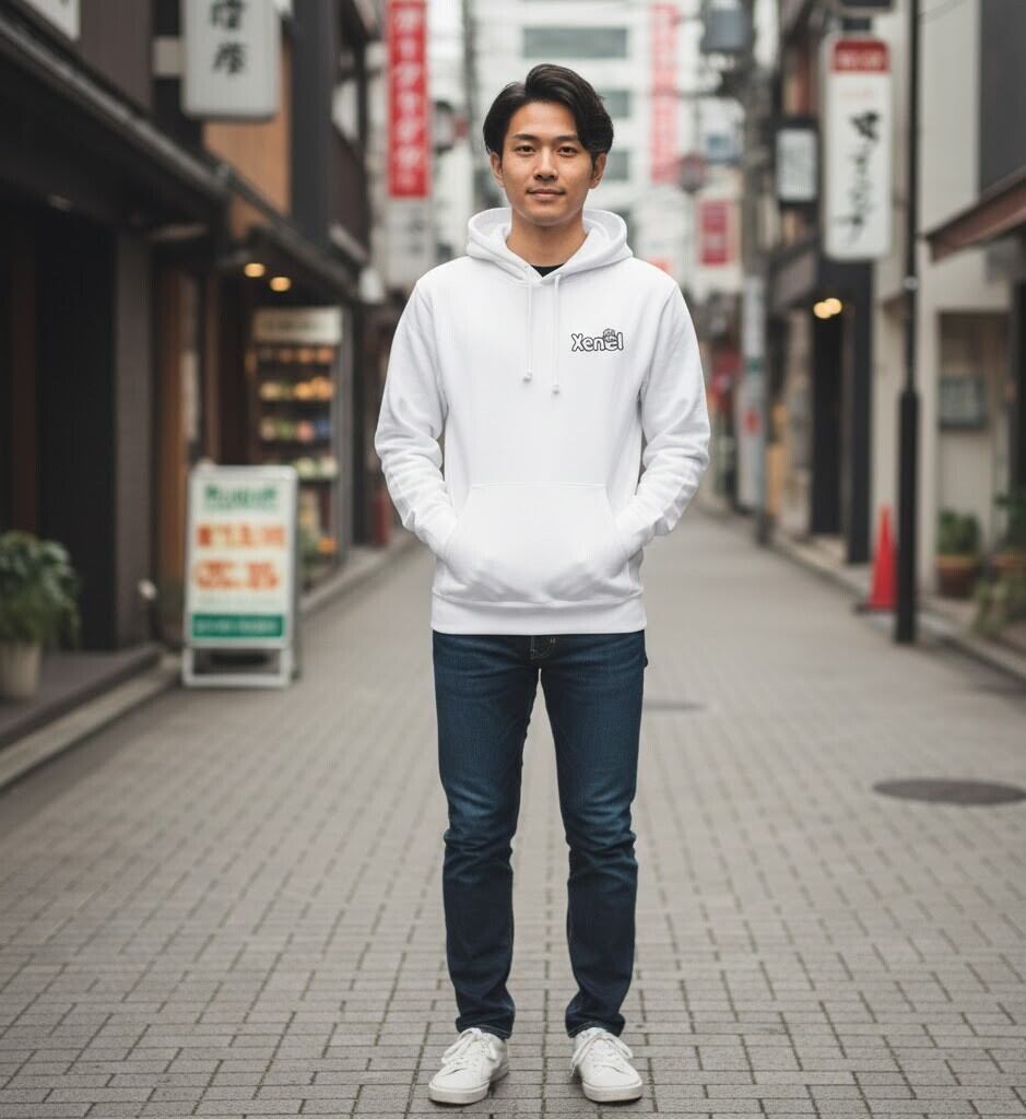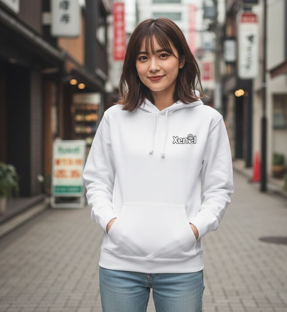 胸元に小さく配置された「Xenel」のミニロゴが印象的な、ワンポイントのプルオーバーパーカー。