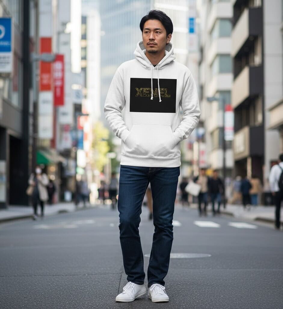 ミニマルでありながら強い存在感を放つ、Xenelの象徴的フーディ。
