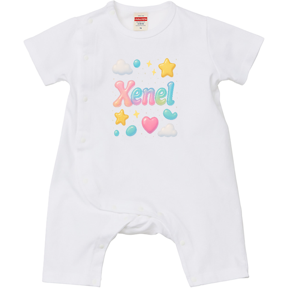 ふんわりとしたパステルカラーのXenelロゴに、星や雲、ハートを散りばめたドリーミーデザイン。