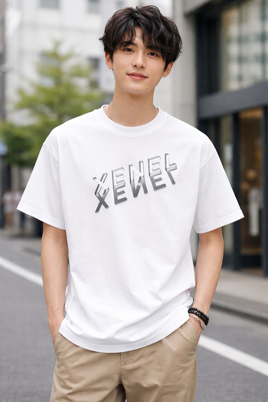 相反する要素を重ねたデザインが、さりげなく個性を引き立てる一枚。