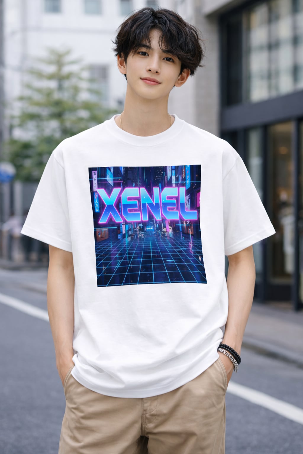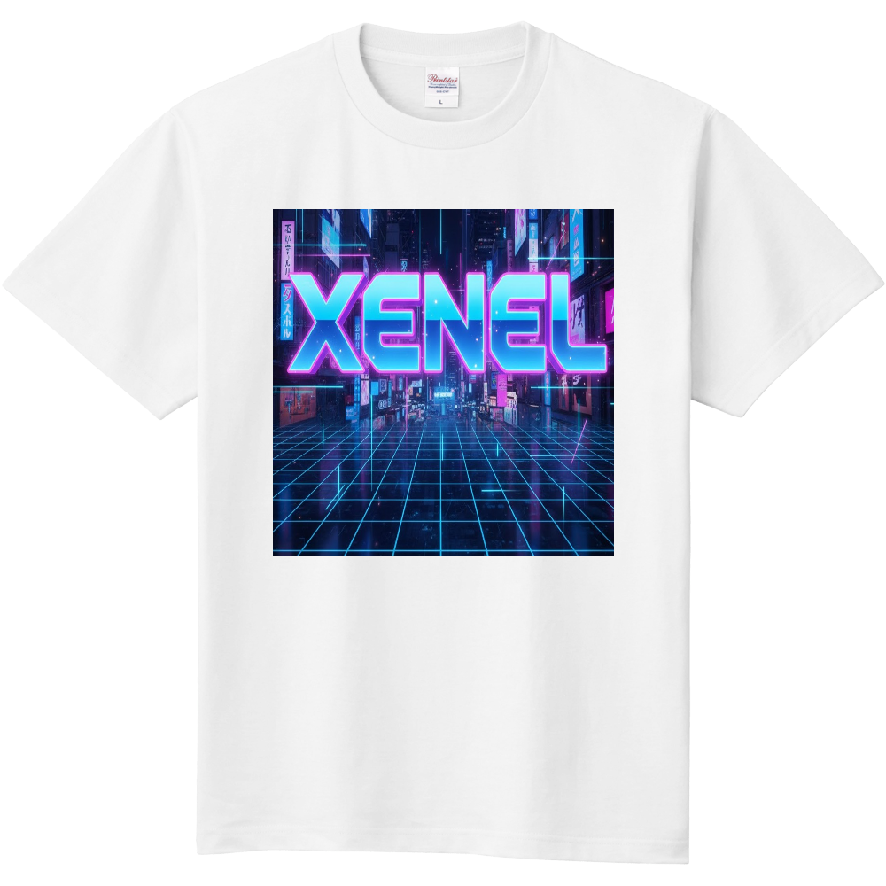 鮮やかなネオンロゴ「XENEL」が浮かび上がる一枚。