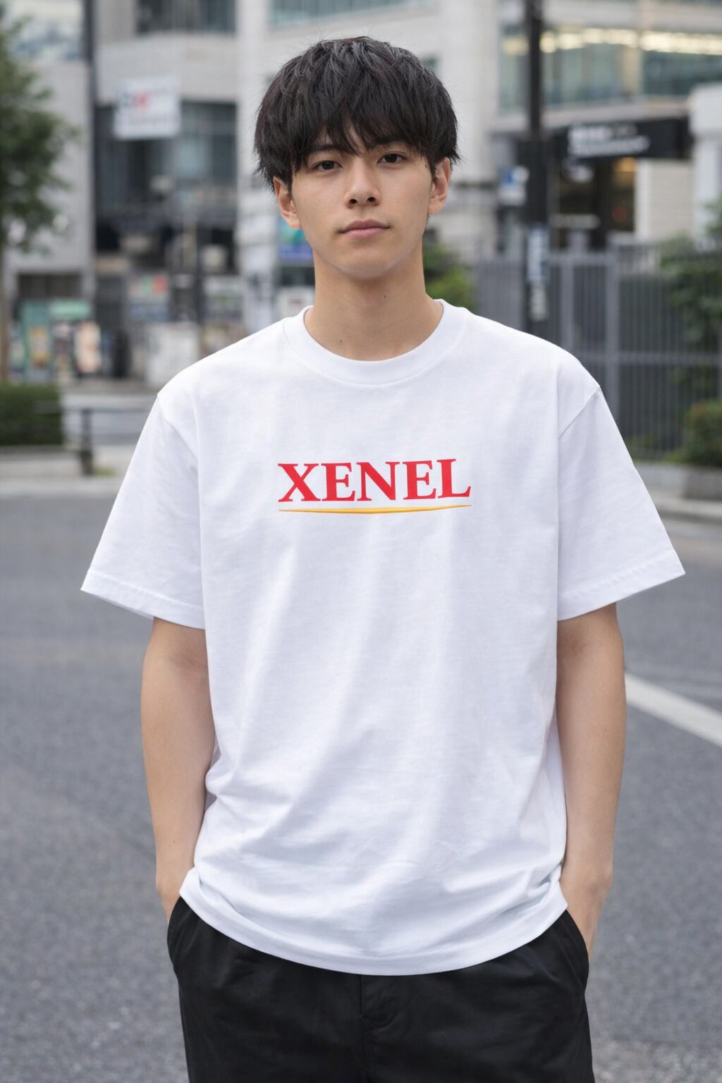 鮮やかなレッドの「XENEL」ロゴと、ゴールドのラインが胸元に映えるクリーンでクラシックなデザイン。