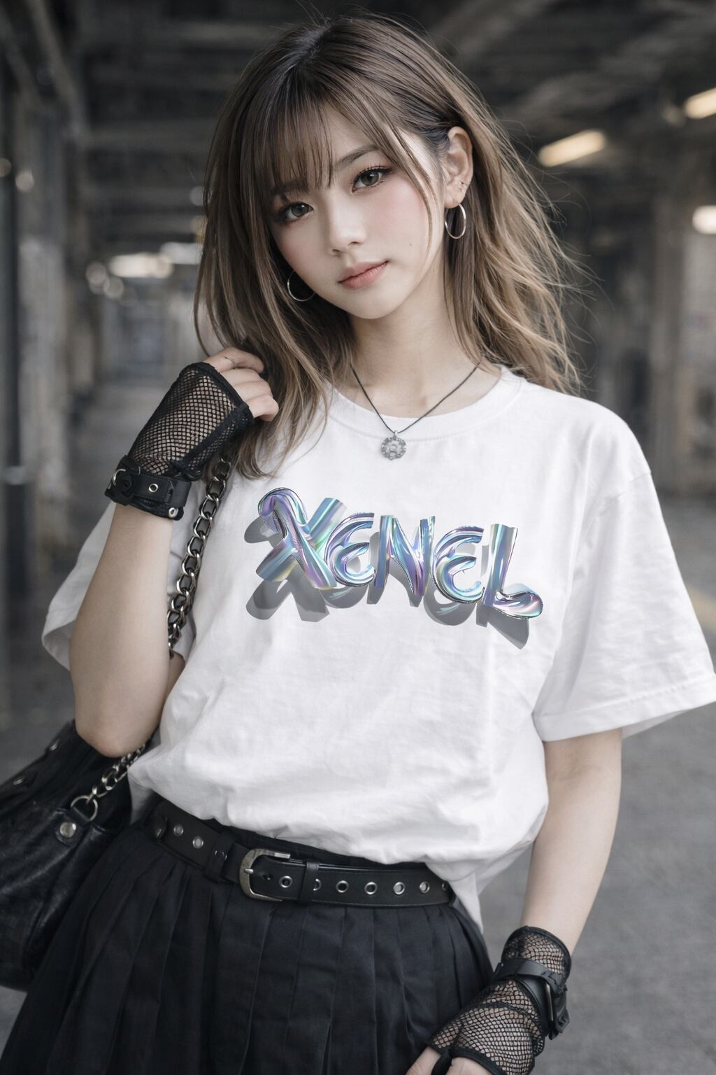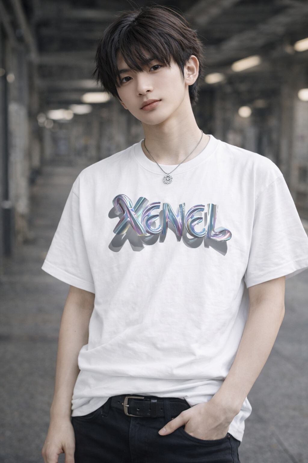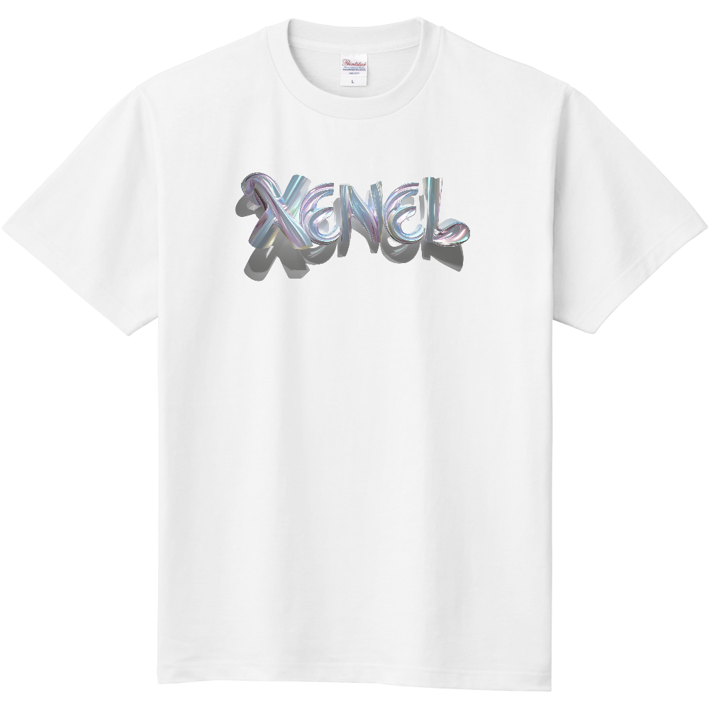「Xenel Melted Prism Tee」は、メタリックな質感とプリズムカラーを融合させたアートロゴデザイン。
